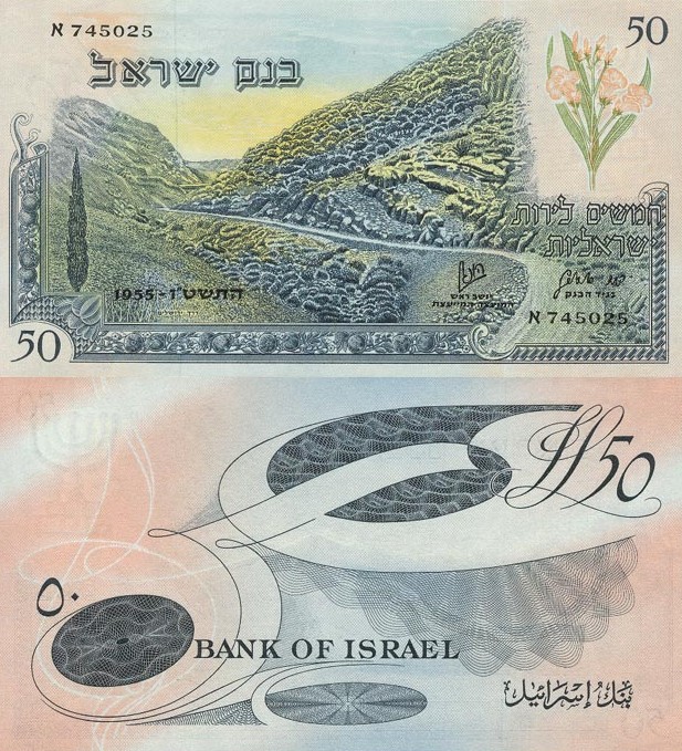שטרות בנק ישראל בקישוט נופים בארץ הונפקו ב – 1957